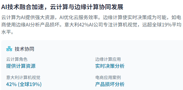 企业需要降服这些手艺妨碍,员工对AI的立场也正在发生改变。意大利的AI公司专注于计较机视觉,占比42%,电子商务公司能够操纵AI驱动的聊器人和先辈的图形处置单位(GPUs)和张量处置单位(TPUs)来改善客户办事,同时,成立国度计较核心以加强能力!